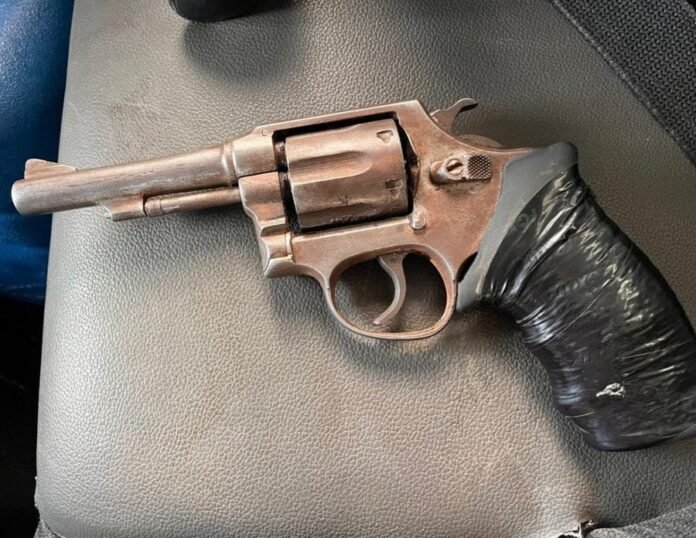 “Ao perceber a aproximação policial, o suspeito tentou fugir para o interior de uma residência, sendo rapidamente alcançado pelo efetivo. Durante buscas no local, foi apreendido 01 Revólver calibre 38 com 05 munições intactas do mesmo calibre, que estava escondido sob blocos de construção”, disse a PM.