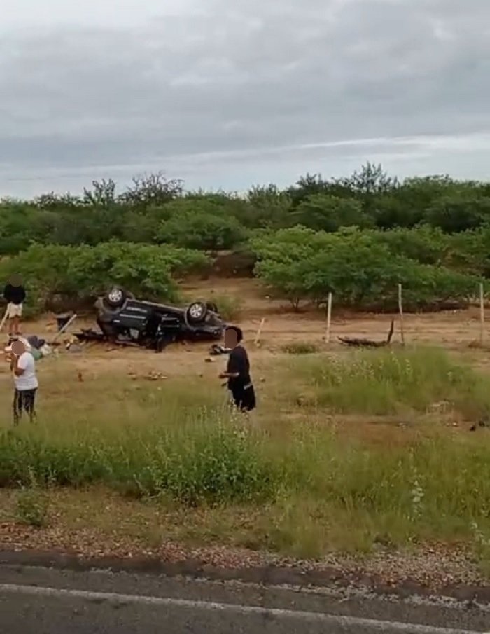 As imagens mostram um carro capotado fora da pista. Ainda não há detalhes sobre como o acidente ocorreu. Duas ambulâncias do SAMU e uma dos Bombeiros estiveram no local, além da Polícia Militar.