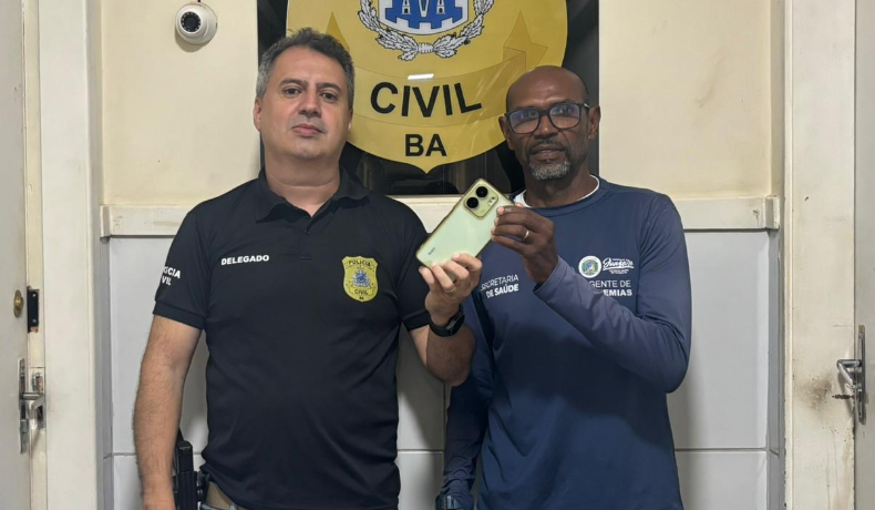 A vítima compareceu à unidade policial, onde recebeu formalmente o celular subtraído. As ações continuam para localizar e responsabilizar o suspeito do crime, disse a polícia. (Guilherme Santos/ Ascom-PCBA).