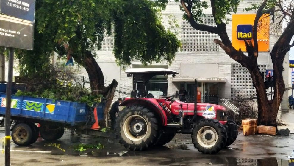 Uma árvore caiu e interditou o trânsito no setor bancário de Juazeiro (BA), na manhã desta quarta-feira (4). A queda ocorreu em frente ao Banco Itaú, no centro da cidade, e foi provocada pelas fortes chuvas que atingiram o município. Com o impacto, a árvore acabou puxando fios de energia e de internet, derrubando também um poste.