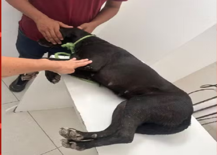 Em nota, a gestão municipal repudiou os maus-tratos e informou que a cadela já está recebendo tratamento veterinário, será castrada por meio do Caat e, após a recuperação, ficará disponível para adoção responsável. (Foto: Prefeitura Municipal de Serrinha).