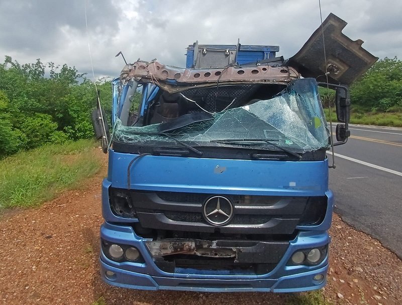A Polícia Rodoviária Federal informou que o motorista perdeu o controle do veículo e tombou. Ele realizou o teste do bafômetro e o resultado foi normal. Ninguém ficou ferido.