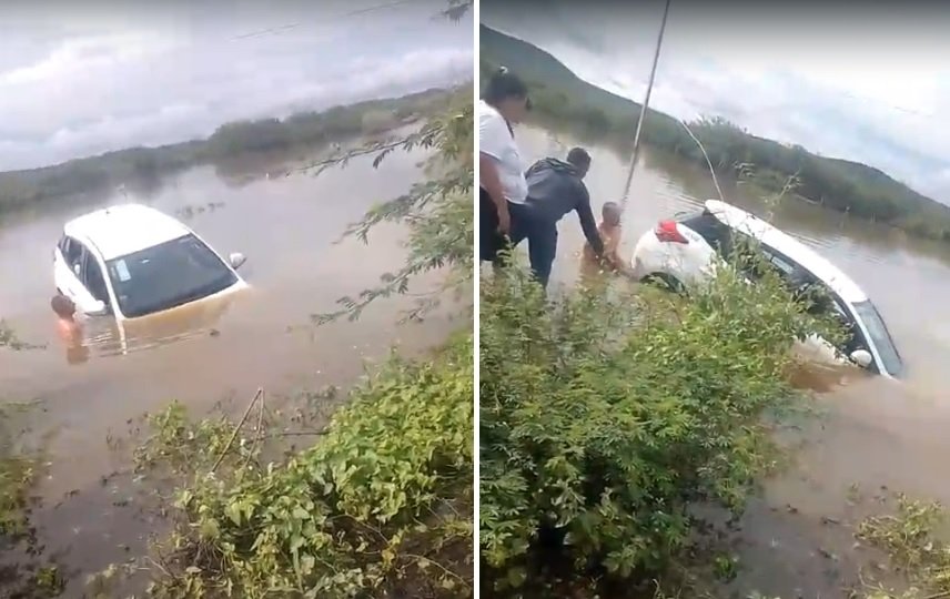 “O motorista estava em pânico e elas lá dentro com o carro afundando. Nosso caseiro Francisco chegou na hora e salvou todos”, contou uma testemunha.
