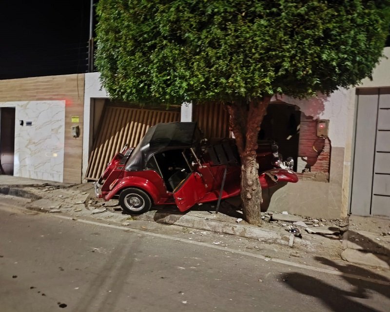 Na noite de ontem (20), um carro bateu e derrubou o muro de uma casa no Loteamento Recife em Petrolina (PE). O veículo é um modelo MP Lafer, considerado um clássico automotivo.