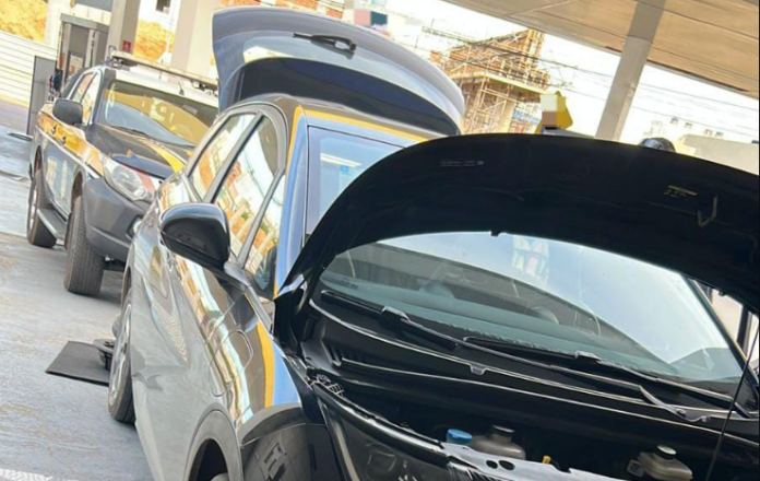 Durante a abordagem a um carro elétrico com placas do Mercosul, o motorista alegou que havia alugado o veículo para trabalhar com transporte de passageiros por aplicativo. A equipe realizou uma verificação detalhada e descobriu diversos sinais de adulteração, além de um registro de roubo desde o dia 21 de dezembro do ano passado.