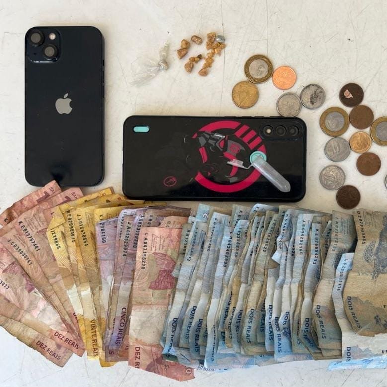 Durante a abordagem foram apreendidas duas gramas de crack, dois celulares e dinheiro. Diante do exposto, o material apreendido, bem como o envolvido, foi apresentado à Delegacia de Polícia Civil para adoção das medidas legais cabíveis.