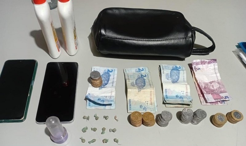 A PM viu o homem escondendo algo dentro da roupa e após abordagem foram encontradas 12 pedras de substância semelhante ao crack, um aparelho celular. A suspeita estava com outro celular e R$ 82.