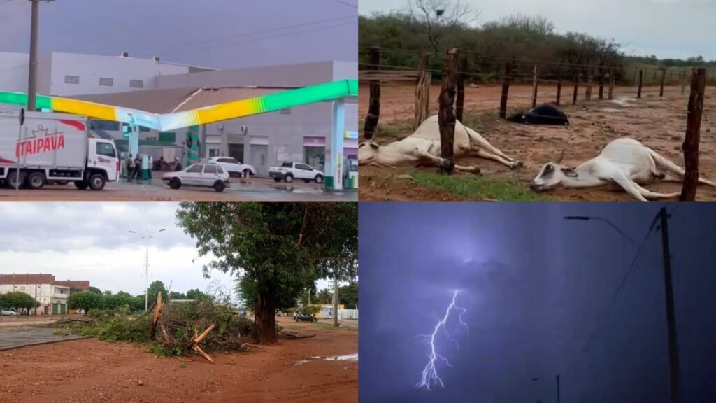 Segundo moradores, as rajadas de vento derrubaram árvores, comprometeram telhados e atingiram estruturas em diferentes pontos da cidade. Na Avenida Raul Alves de Souza, na entrada do município, diversas árvores foram arrancadas, o muro de uma oficina desabou e um posto de combustíveis teve parte da estrutura danificada. Placas de estabelecimentos comerciais também caíram com a força do vento.