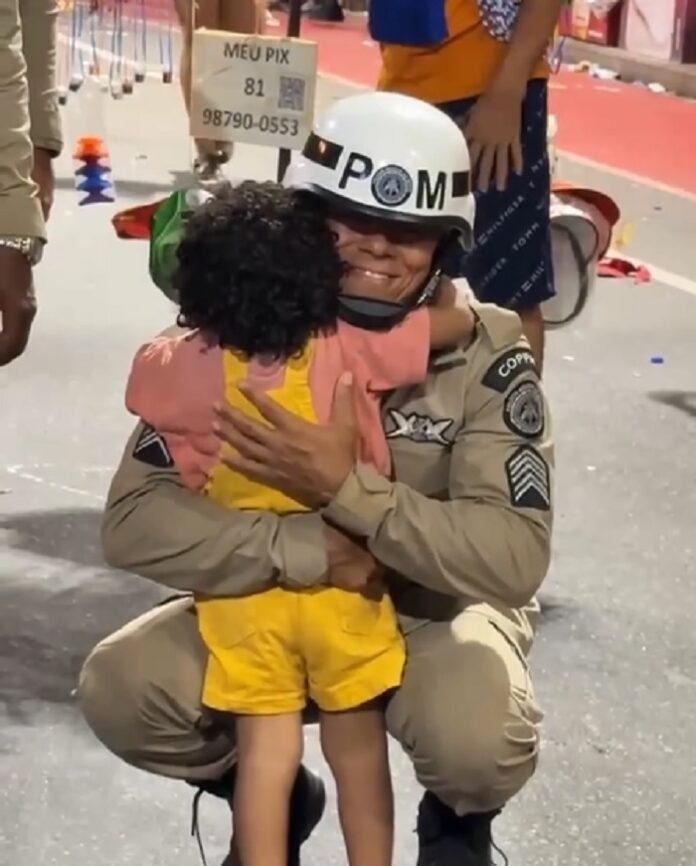 Em meio à tantas imagens de violência no Carnaval, que têm circulado nas redes sociais, uma chamou a atenção: a de uma criança cumprimentando e abraçando policiais militares que faziam a segurança do circuito da festa em Salvador (BA).