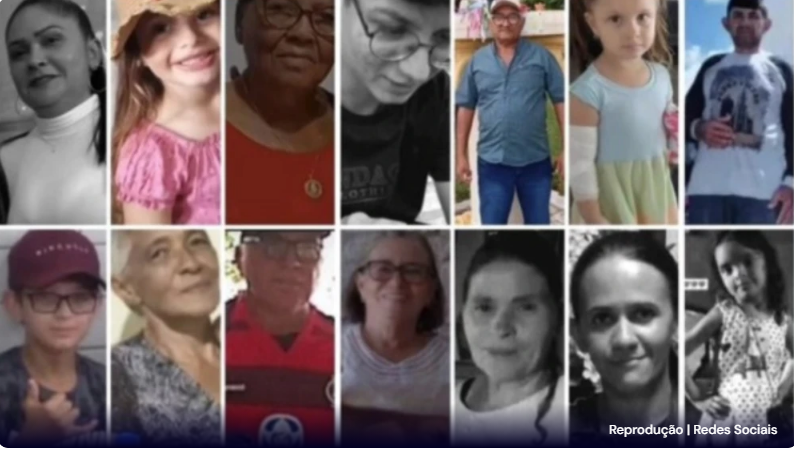 Os corpos velados eram de Luiz Miguel de Alcântara, de quatro anos, José Caio de Oliveira Souza, de 15 anos, Adelmo José de Oliveira, 52, Sebastião Vieira de Moraes Neto, 55, e Josefa Madalena de Alcântara, de 67.