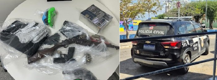 As Polícias Civil e Militar também apreenderam três armas de fogo, munições, drogas e outros objetos. As investigações miram o tráfico de drogas e lavagem de dinheiro.