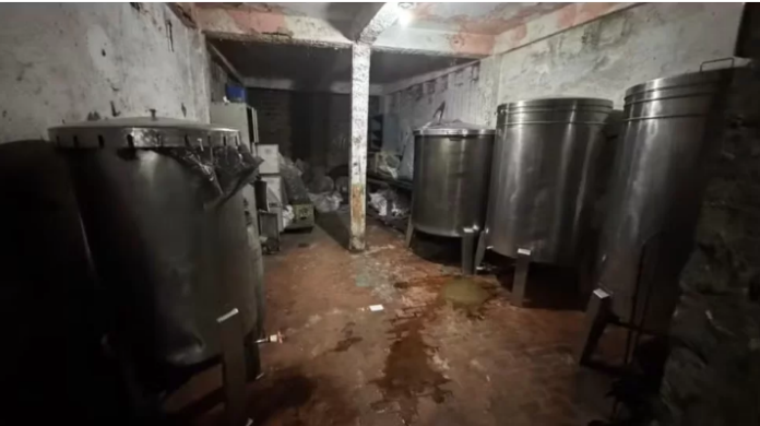 Durante a inspeção, foram encontradas diversas garrafas vazias, rótulos, tampas, galões de álcool, bebidas já envasadas e equipamentos em condições precárias.
