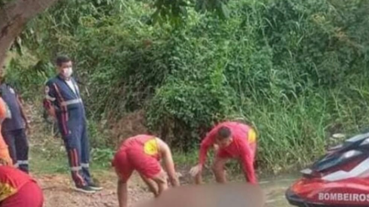 Os corpos das vítimas, um homem e um adolescente foram localizados e retirados da água ainda na tarde de domingo, após buscas realizadas por equipes dos bombeiros. Uma criança que estava no local também teria se afogado, mas foi resgatada com vida por populares. (Foto: Reprodução).