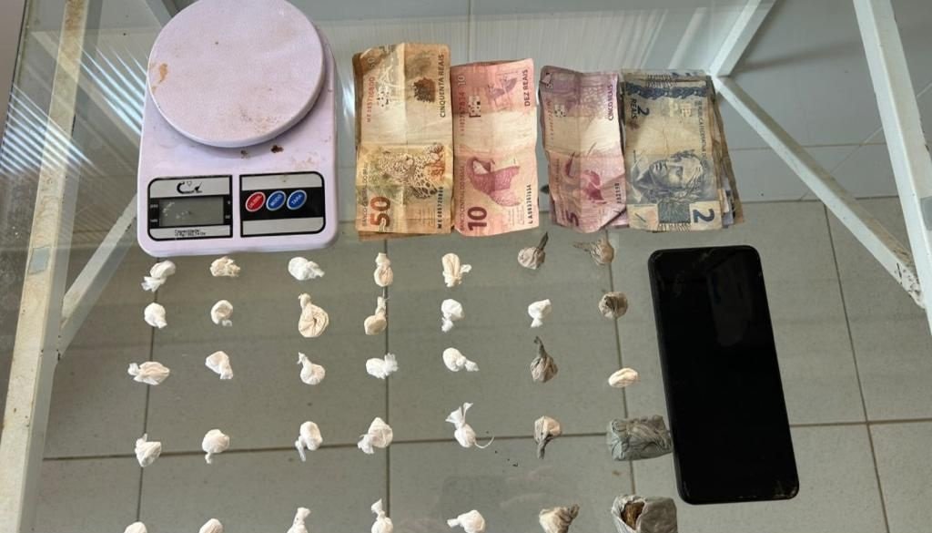 Os policiais conseguiram alcançá-lo e apreenderam no interior do imóvel 28 invólucros de substância análoga à cocaína, duas porções de substância análoga à maconha, uma balança de precisão e a quantia de R$ 359,00 em espécie. O homem e todo material foram apresentados na Delegacia.