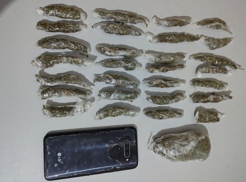 De acordo com a PM, o suspeito já possuía passagens por roubo e porte ilegal de arma de fogo. Ao ser abordado, foram encontrados 28 invólucros de erva seca, aparentando ser maconha; uma porção maior de erva seca, envolta em filme plástico, também aparentando ser maconha e um aparelho celular.