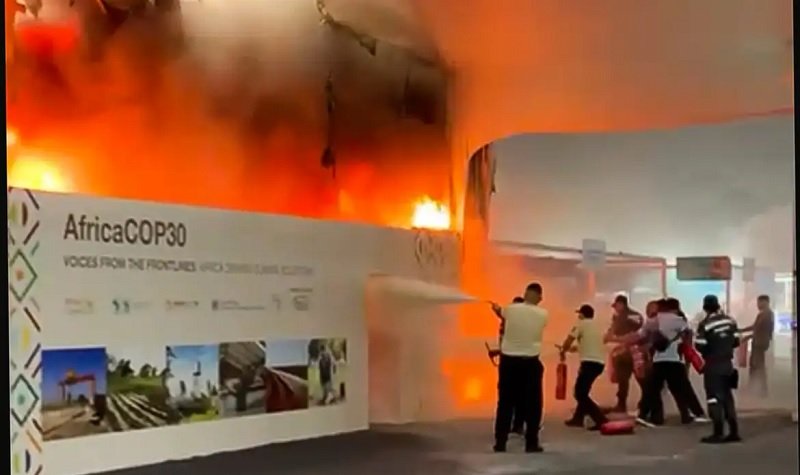 Um incêndio atingiu a estrutura de um dos pavilhões da COP30, em Belém, na tarde de hoje (20).