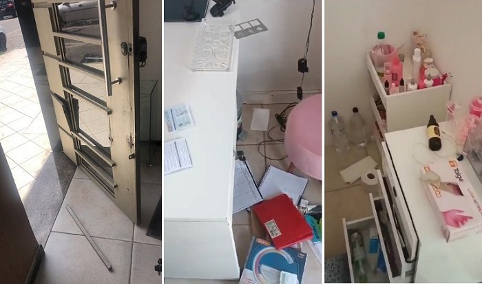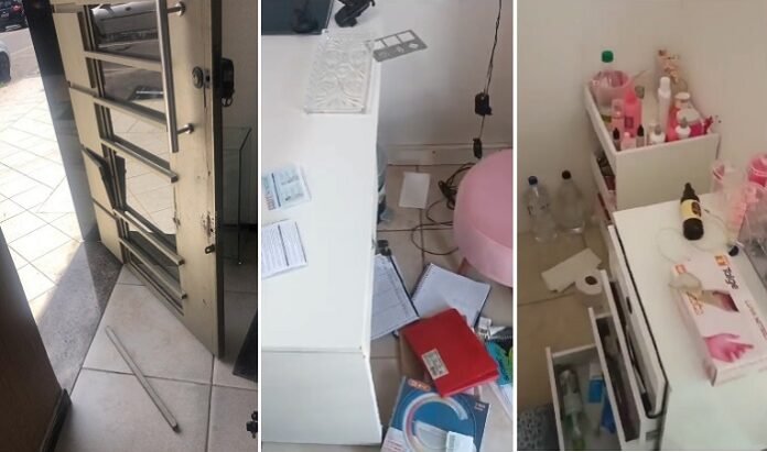 Nessa segunda-feira (24), os funcionários de um estabelecimento de serviços de estética, localizado na rua Olímpio Virgílio, no Centro, se depararam com o local bastante destruído. Segundo o proprietário do imóvel, os criminosos furtaram notebook, celular, secadores, pranchas, aventais, caneta de manicure, mala rosa, produtos de estética que estavam a venda, caixa de som, garrafa térmica e outros produtos.