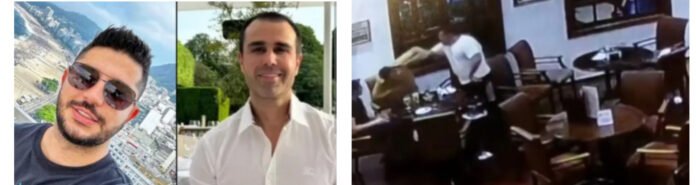 A briga começa dentro do estabelecimento. O médico chega, cumprimenta a dupla com apertos de mão e dá início a uma discussão. Em dado momento, ele dá um tapa em uma das vítimas, que estava sentada. Na sequência, a outra vítima, que assistia à cena, revida com diversos socos. Uma outra gravação, feita do lado de fora do restaurante, mostra Luís Roberto e Vinicius caminhando no estacionamento do estabelecimento, quando o homem aparece por trás e começa a atirar.