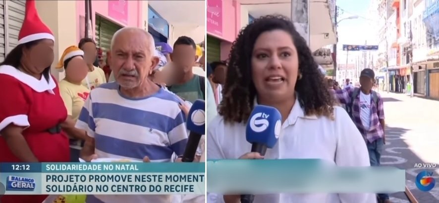 A repórter da TV Guararapes, Renata Araújo não conteve a emoção ao entrevistar o senhor José da Silva, o primeiro da fila a receber uma marmita de comida, durante um almoço solidário, no Recife (PE).