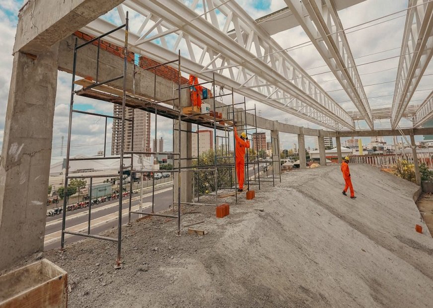 Pensando no conforto e na qualidade do equipamento, o material escolhido para a cobertura do teatro é uma telha termoacústica, que reduz a troca de calor e som, proporcionando uma experiência mais agradável. Além da execução da cobertura, as equipes estão trabalhando na confecção de corrimão e na parte elétrica da obra.