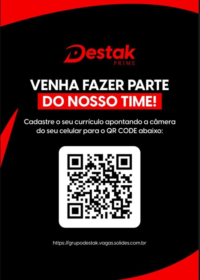 Os interessados podem acessar a página na internet (grupodestak.vagas.solides.com.br) e conferir as oportunidades e como enviar o currículo.