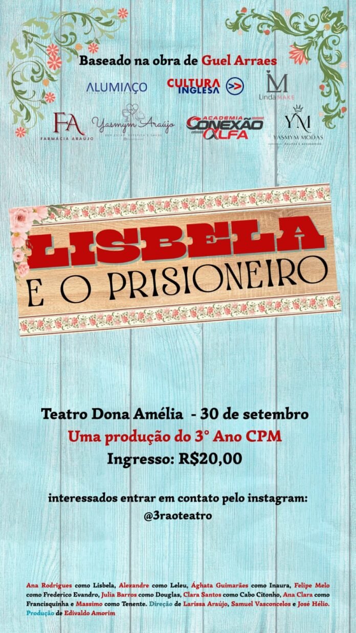 A peça teatral ‘Lisbela e o Prisioneiro’ será apresentada por alunos do 3º ano do Colégio da Polícia Militar, na próxima terça-feira (30), no teatro Dona Amélia, em Petrolina (PE).
