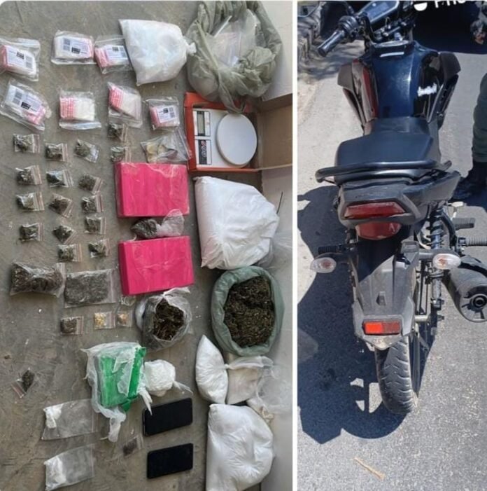 Na quarta-feira (10), dois suspeitos foram presos no bairro Areia Branca em Petrolina (PE). Eles transitavam em uma motocicleta sem placa de identificação. Durante a busca pessoal, foi encontrada com os homens uma porção de maconha, pesando aproximadamente 10 gramas.