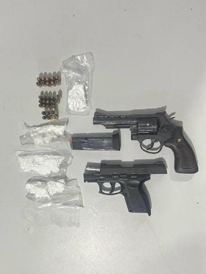 Policiais do 5ºBPM e 2°BIEsp encontraram em um terreno baldio duas armas de fogo, sendo 01 revólver calibre 38, marca Taurus, com 06 munições do mesmo calibre, 01 pistola calibre .40, modelo 24/7, Taurus, com 01 carregador e 10 munições do mesmo calibre, além de 15 munições calibre 9mm, e a quantidade de 112 gramas de cocaína.