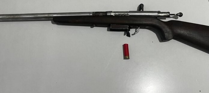 A guarnição foi acionada para averiguar uma denúncia de ameaça contra uma mulher no povoado Alto Vermelho. Na localidade de Lagoa do Capim, os policiais localizaram o suspeito. Durante a busca pessoal, foram encontrados uma espingarda calibre .16, um cartucho calibre .16 e 1,186 kg de substância análoga à maconha.