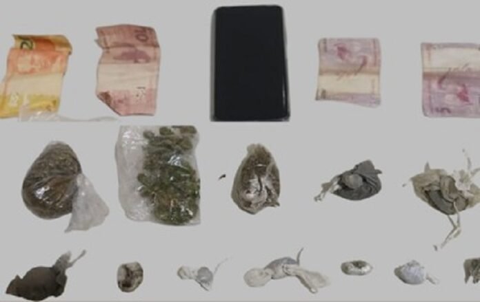 Durante a abordagem a um homem, foram encontradas porções de substância análoga à cannabis (maconha), além de uma quantia em dinheiro.
