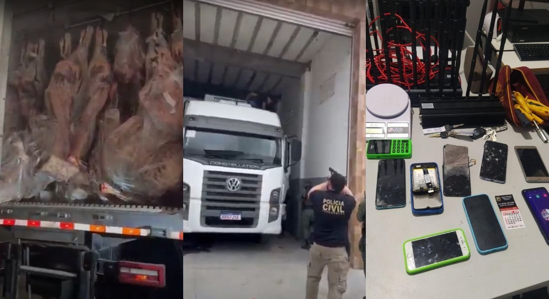 Nove homens foram presos suspeitos de integrar uma associação criminosa responsável pelo roubo de um caminhão que transportava carne bovina refrigerada, avaliada em R$ 320 mil.
