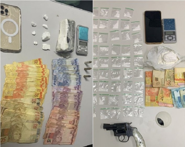 A primeira ocorrência começou após denúncia de disparos de arma de fogo. Um homem foi flagrado com 230,2 gramas de cocaína, uma balança de precisão, três munições calibre .38, um celular e R$ 2.046,00 em espécie. Ele foi conduzido à Delegacia Territorial de Remanso, onde foram adotadas as medidas legais cabíveis.