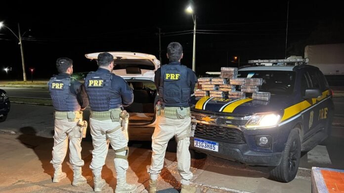 Durante os procedimentos de fiscalização, os policiais realizaram buscas no automóvel e localizaram uma grande quantidade de substância análoga a cloridrato de cocaína, totalizando aproximadamente 26,25 kg do entorpecente.