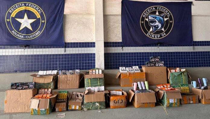 A Receita Federal do Brasil atua nas fronteiras e em todo o território nacional e por meio de operações como esta busca, além de coibir a evasão de tributos, retirar do mercado produtos contrafeitos (piratas), não homologados pelos órgãos competentes que podem causar prejuízos à saúde e à segurança da população. (Foto: Divulgação).