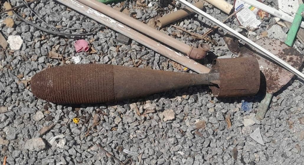 Em análise inicial, a equipe encaminhada ao local identificou o objeto como uma bomba de morteiro enferrujada, artefato que se caracteriza por disparar projéteis explosivos em trajetória de arco elevado.