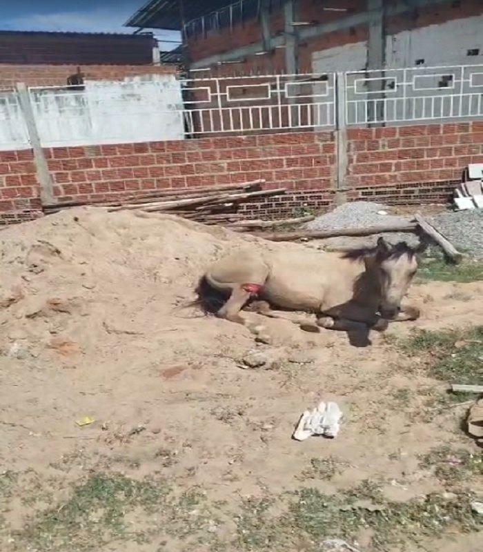 “Tem um cavalo aqui próximo ao São Jorge e Dom Avelar que está machucado e tem outro amarrado na corda, não encontrei o responsável. Estão aqui na rotatória ali do São Jorge e Dom Avelar, na Avenida da Redenção”, disse.