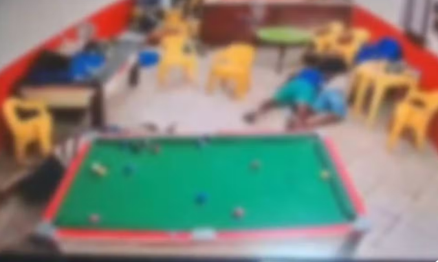 Nas imagens das câmeras de segurança, foi possível ver o momento em que três homens encapuzados entraram no bar, no bairro Ponta da Ilha, e efetuaram os disparos.