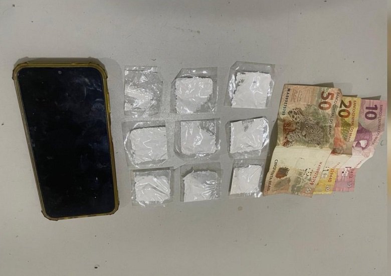 A ação ocorreu durante patrulhamento ostensivo nos bairros da cidade. No Beco do Jereba, localizado no centro do município, os policiais abordaram um motociclista e, durante a busca pessoal, foram encontrados em sua posse nove sachês contendo substância análoga à cocaína, além da quantia de R$ 80,00 (oitenta reais) em espécie.