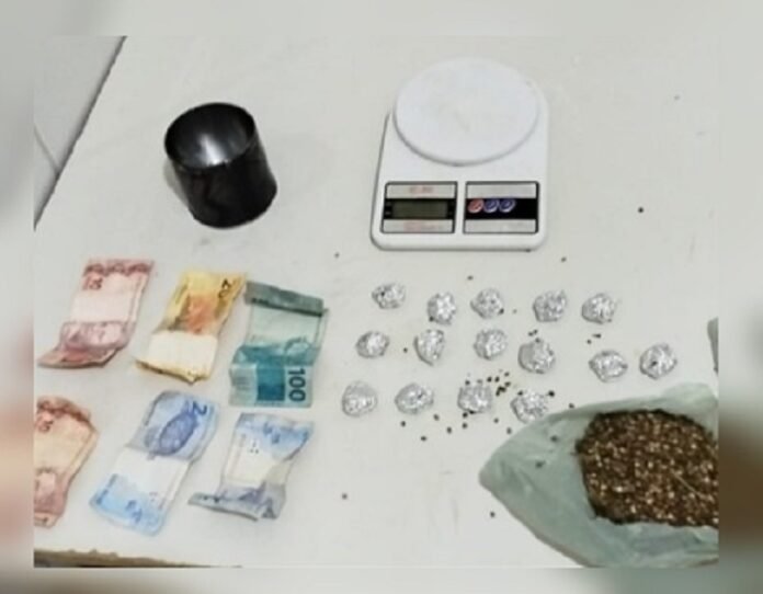 Policiais da 75ª Companhia Independente de Polícia Militar (CIPM), ao abordarem um suspeito, encontraram uma quantidade de substância análoga à cannabis (maconha), uma balança de precisão, uma sacola contendo sementes da erva e dinheiro.