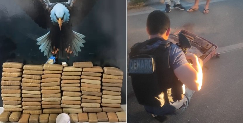 Os policiais flagraram o momento em que uma mala cheia de entorpecente era transportada pela suspeita em via pública, dentro de um veículo. Em um imóvel, foi encontrada mais uma quantidade de drogas e outra mulher presa. No total foram apreendidos 43kg de maconha, 60 gramas de cocaína e 200g de crack.
