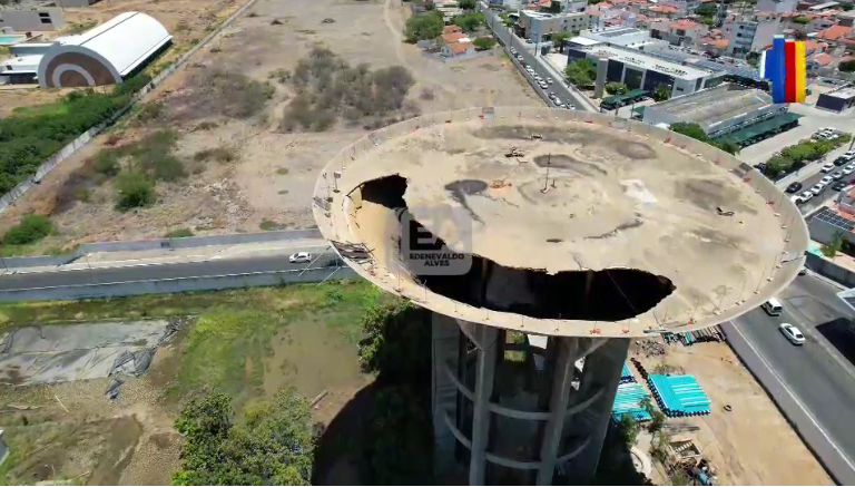 Observe que o buraco da laje superior do reservatório elevado da Estação de Tratamento de Água (ETA-Centro) aumentou.