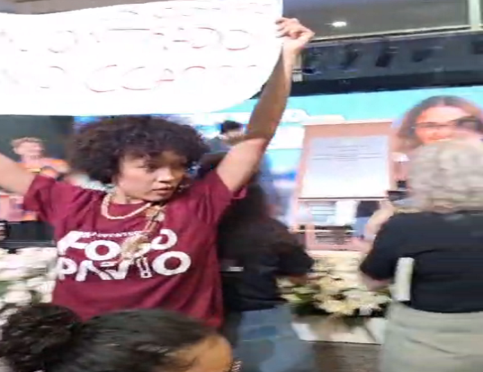 A manifestação aconteceu durante a visita do Ministro da Educação, Camilo Santana durante cerimônia e anúncios relacionados à área.